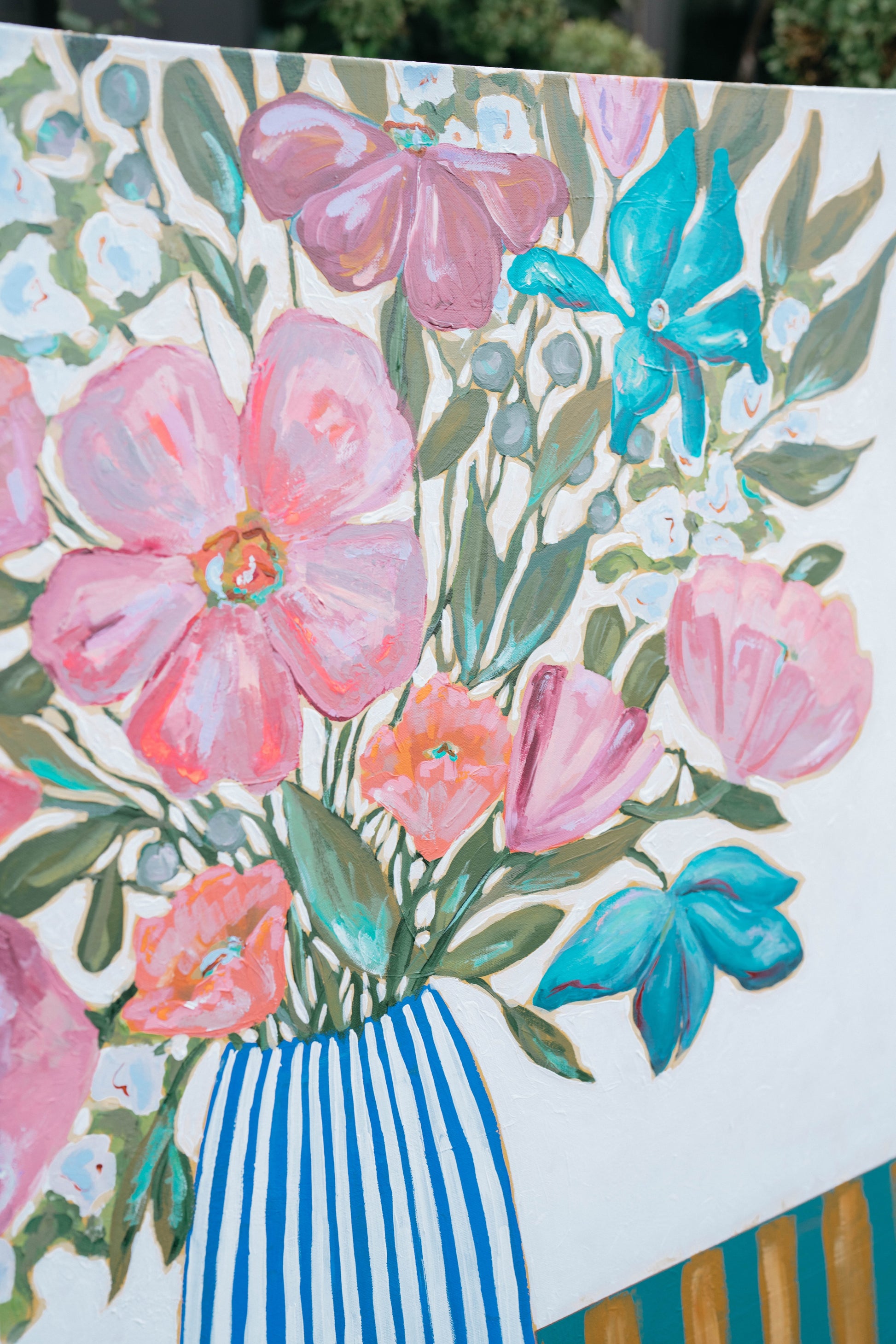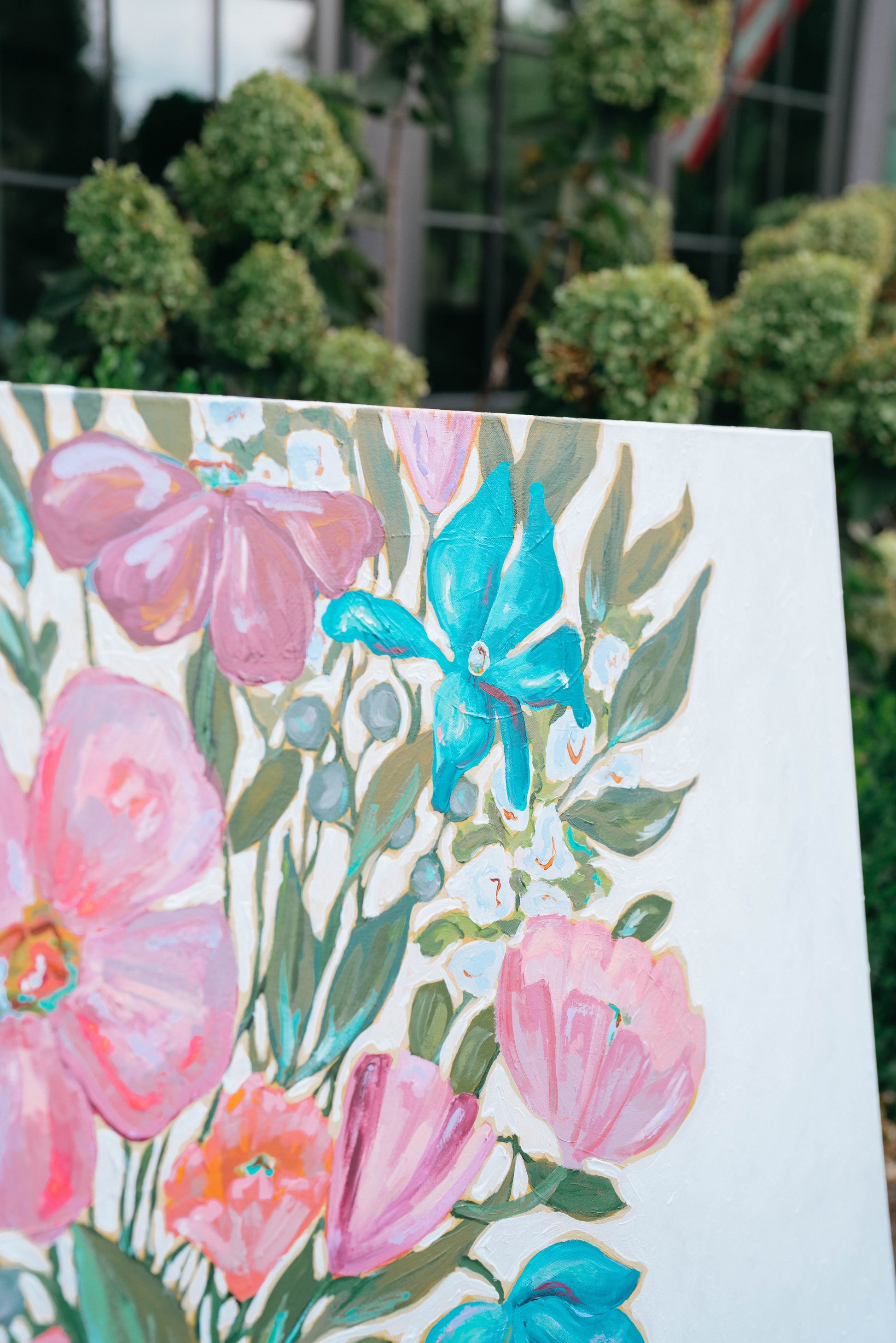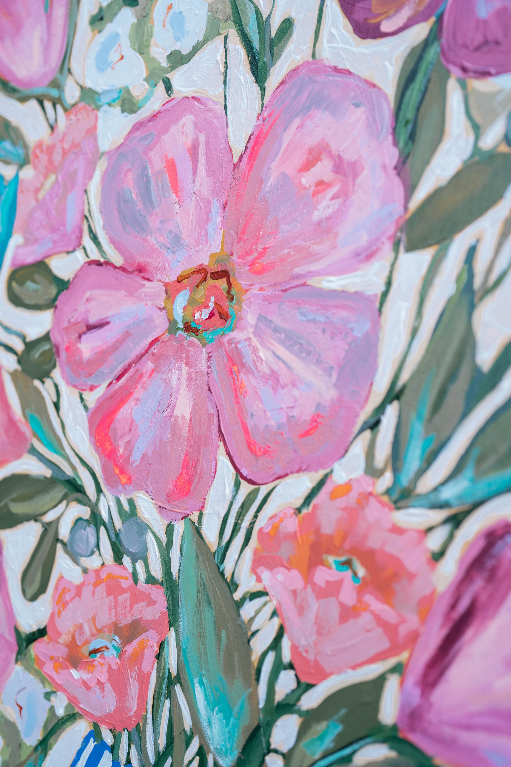 "They are planted in the house of the Lord; they flourish in the courts of our God." Psalm 92:13. Flourish is a celebration of God's life-giving presence, blooming in every season. Acrylic on 40 x 40 inch gallery wrapped canvas.