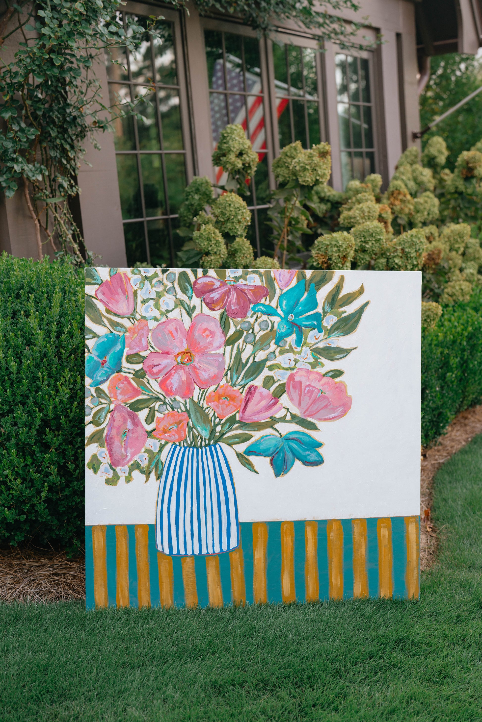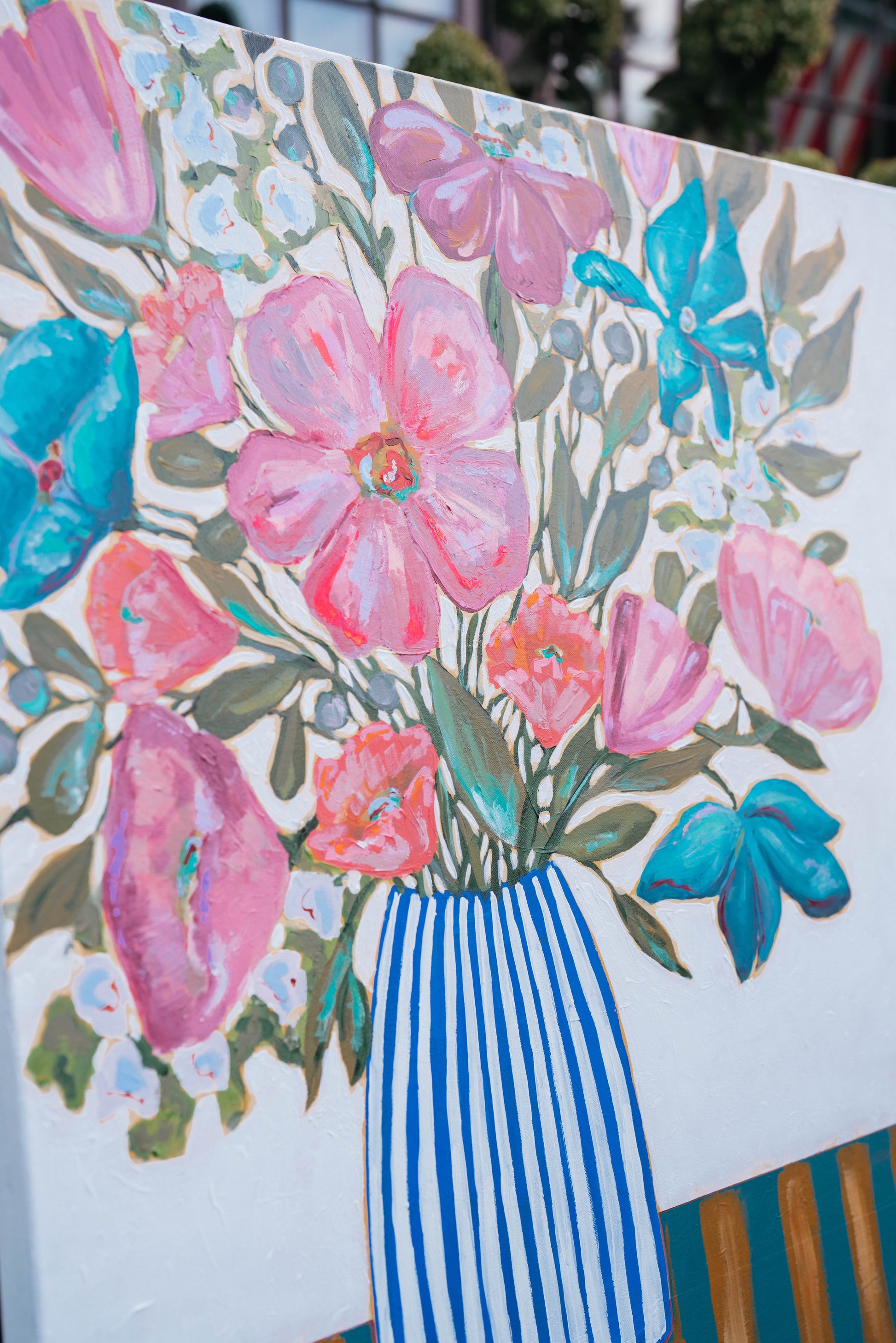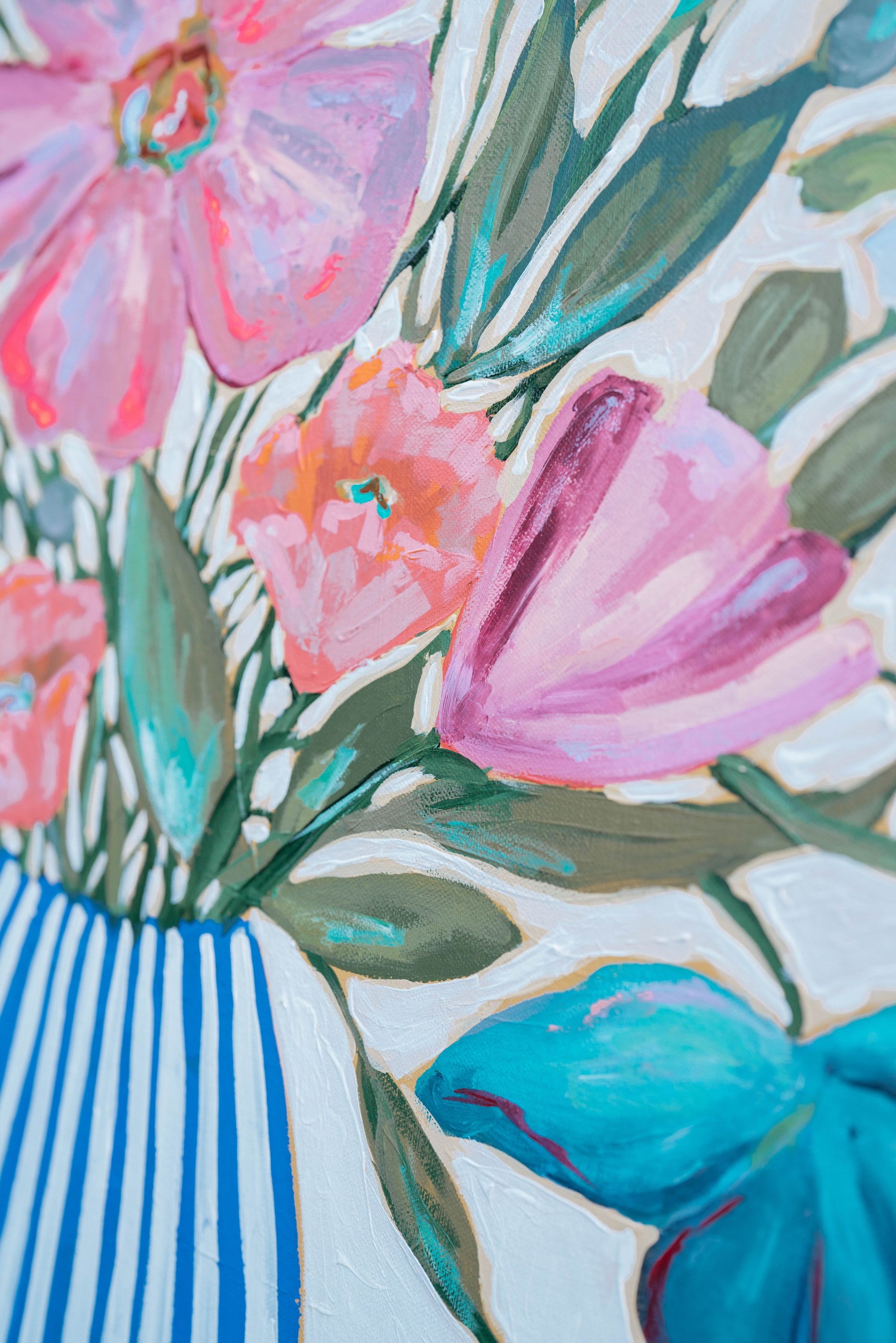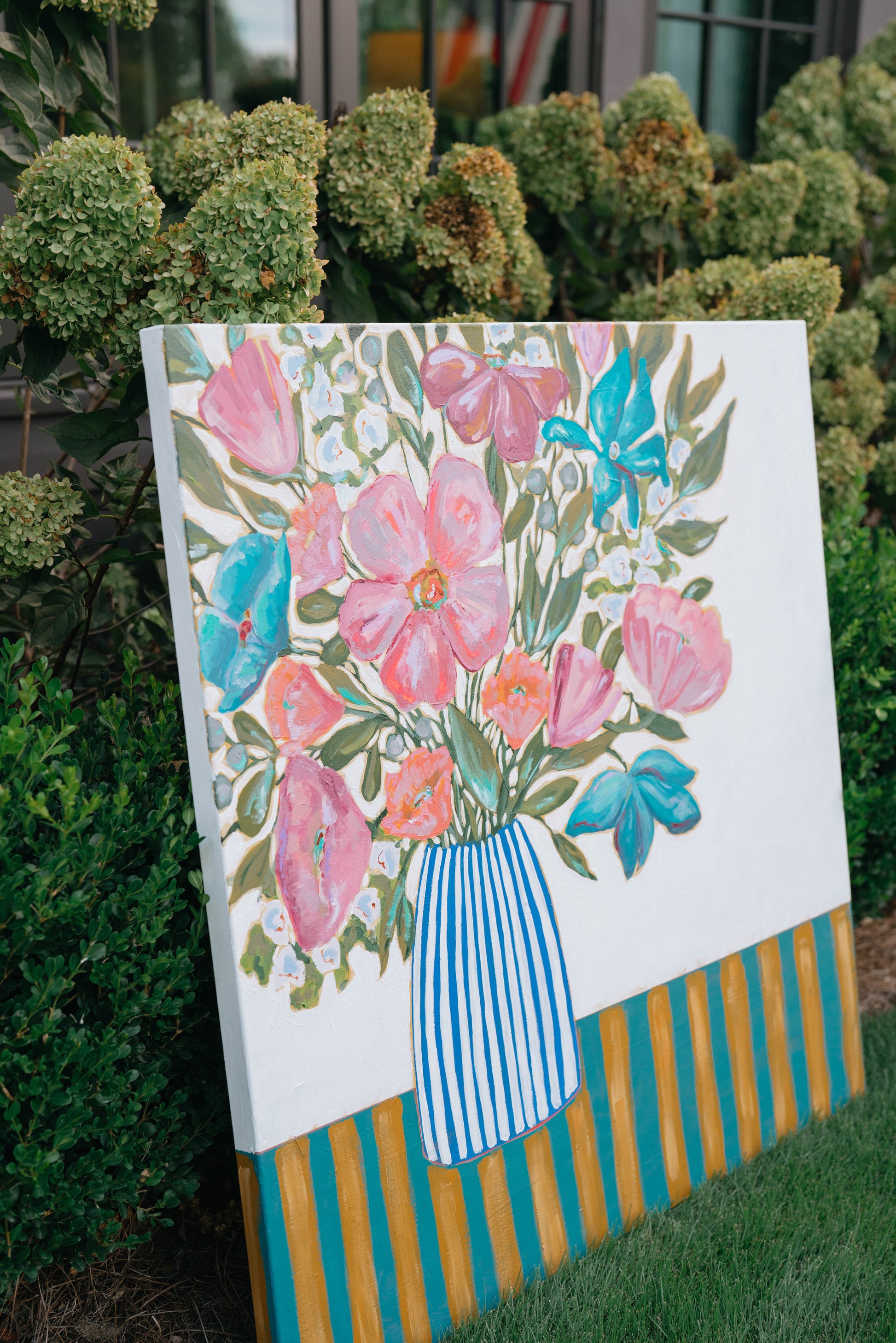 "They are planted in the house of the Lord; they flourish in the courts of our God." Psalm 92:13. Flourish is a celebration of God's life-giving presence, blooming in every season. Acrylic on 40 x 40 inch gallery wrapped canvas.