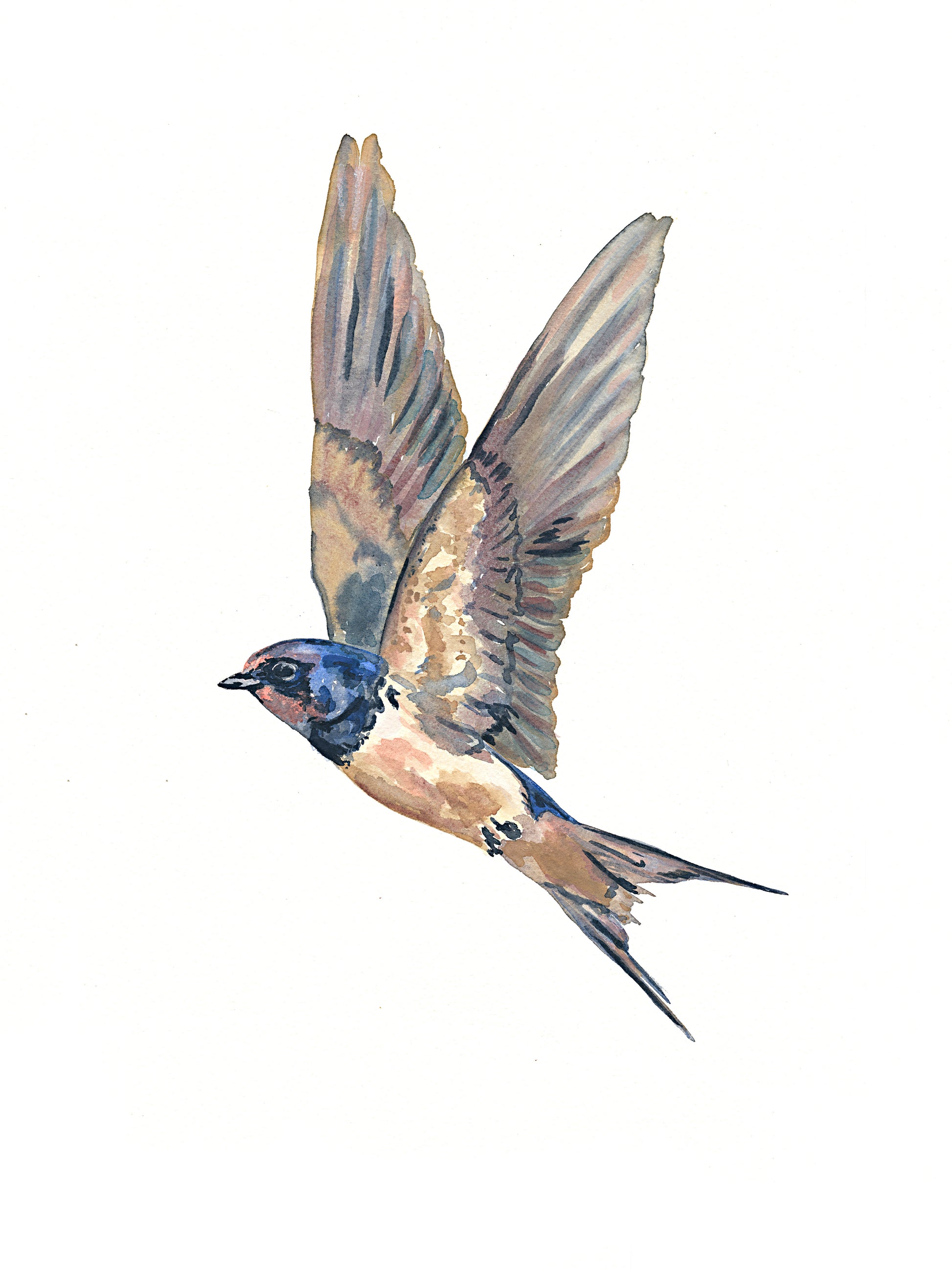 Original watercolor swallow on 10 x 14 inch Arches 140 lb watercolor paper.