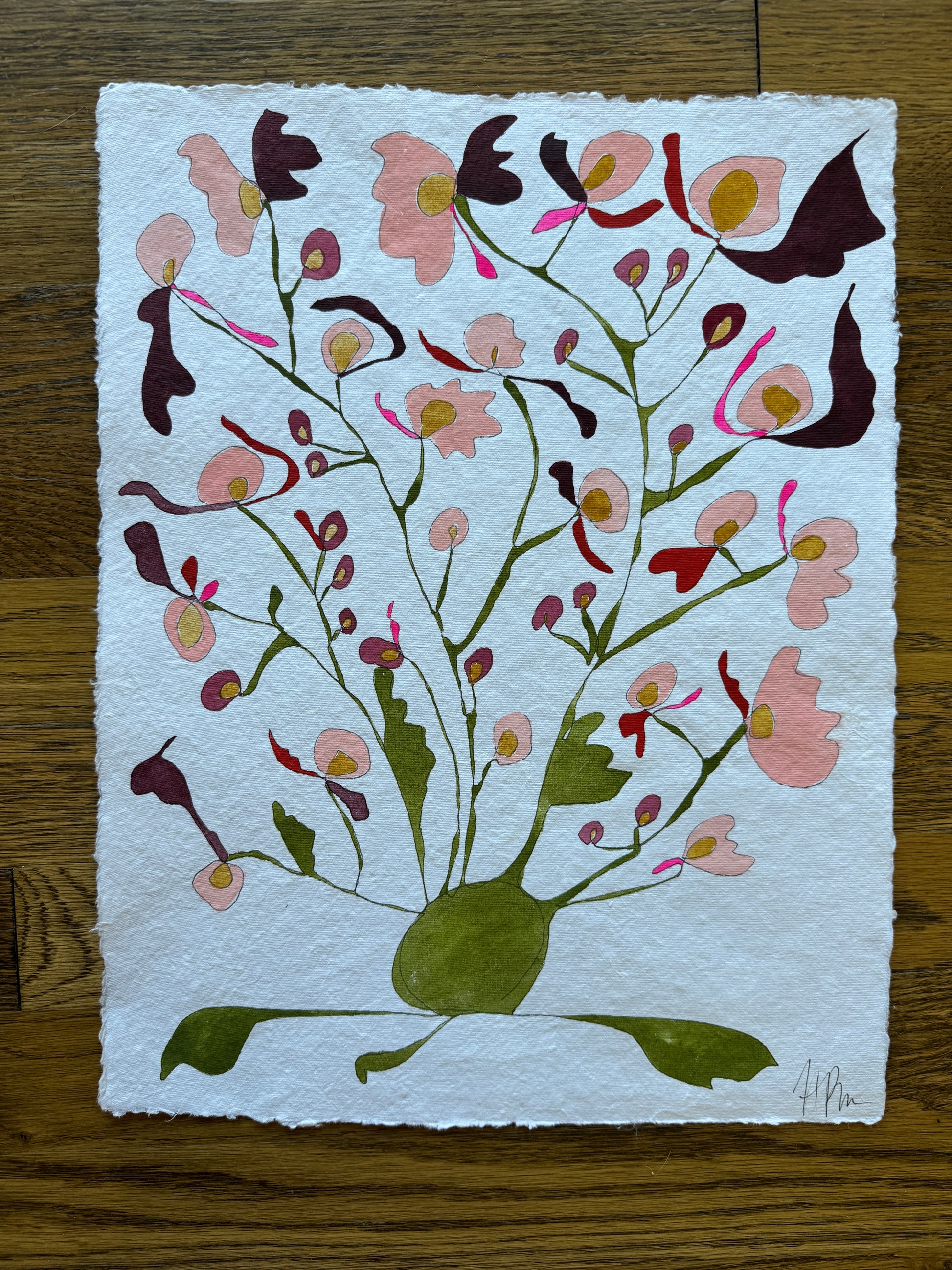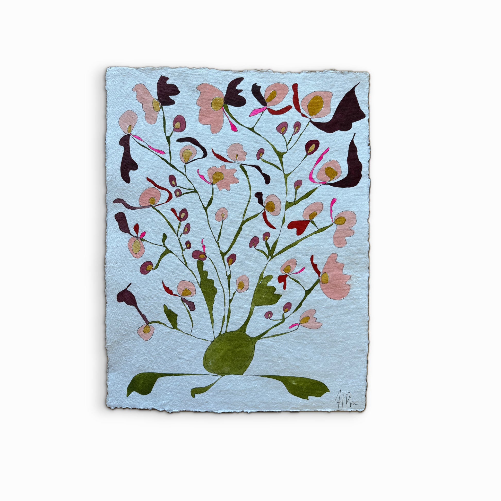 ~12.5 × 16 inch watercolor Rooted on white handcrafted watercolor paper with a deckle edge.