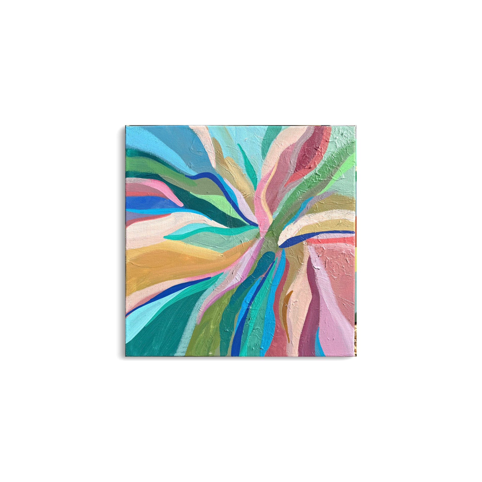 This is an original acrylic abstract painting on 12x12 inch canvas, framed.